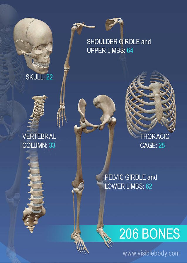 While the adult human skeletal system includes 206 bones, the infantile skeletal system has many more, since not all of the bones have fused together yet.
