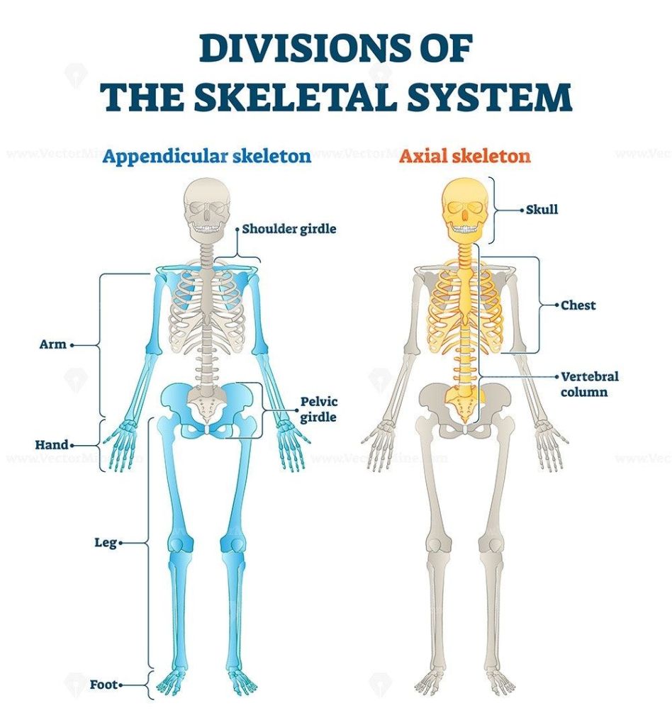 Arms – shoulder blade (scapula), collar bone (clavicle), humerus, radius and ulna.