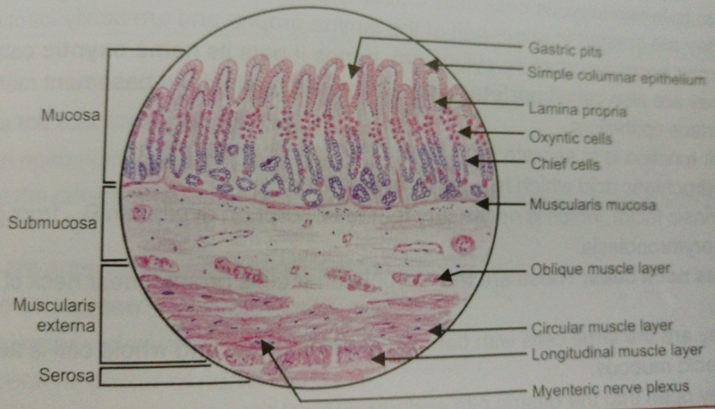 _study of structures with the aid of a microscope ,i.e, histology of fundus of the stomach in diagram below.